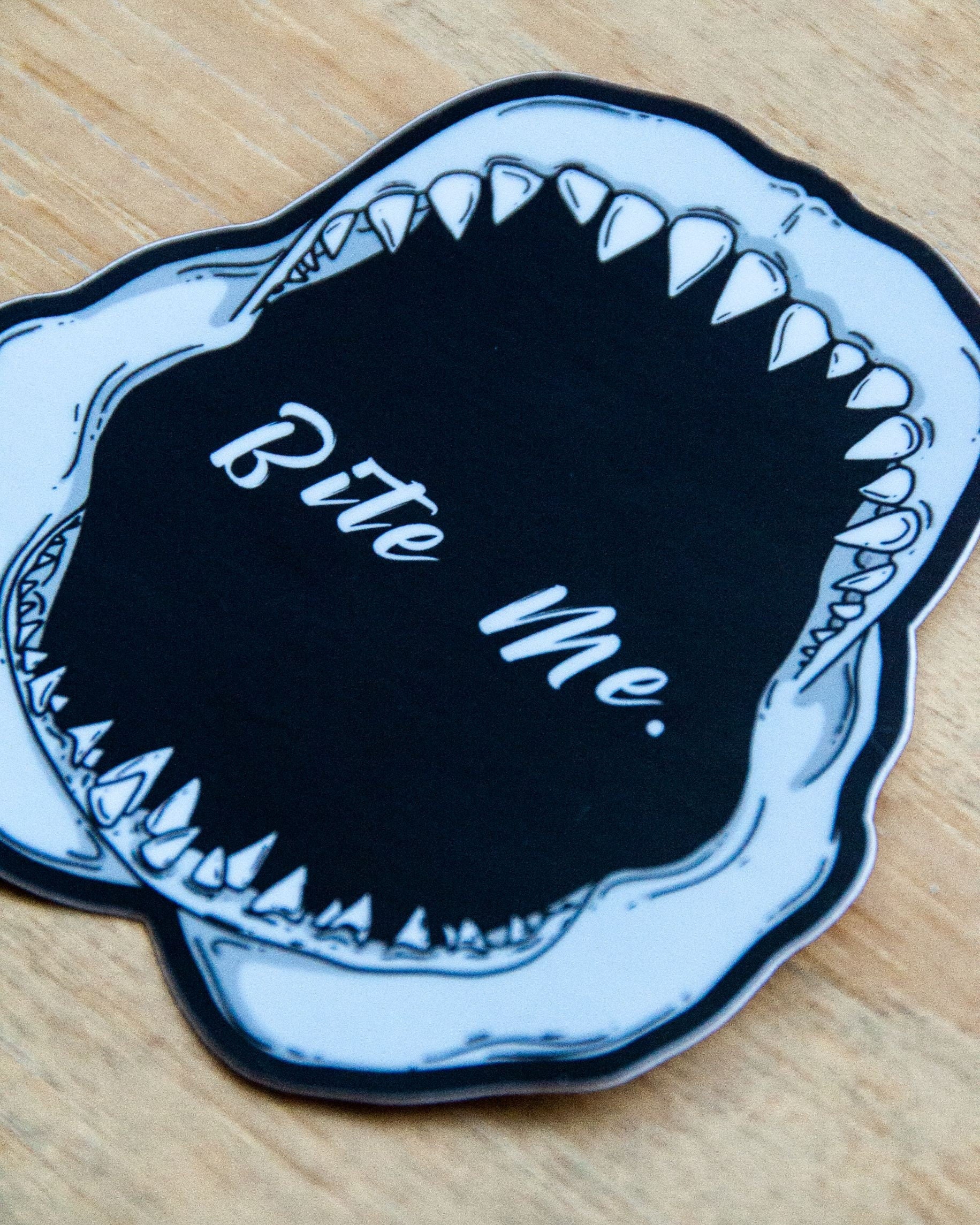 Waterproof Vinyl Sticker - "Bite Me" Shark Jaw Shark Tooth
